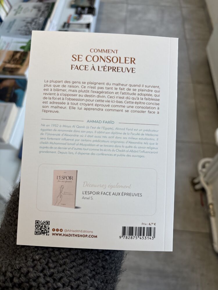 La plupart des gens se plaignent du malheur quand il survient, plus que de raison. Ce n’est pas tant le fait de se plaindre qui est à blâmer, mais plutôt l’exagération et l’attitude adoptée, qui revient à s’opposer au destin divin. Ceci n’est dû qu’à la faiblesse de la foi et à l’obsession pour cette vie ici-bas. Cette épitre concise est adressée à tout croyant éprouvé comme une consolation à son malheur. Elle lui apprendra comment se consoler face à l’épreuve.